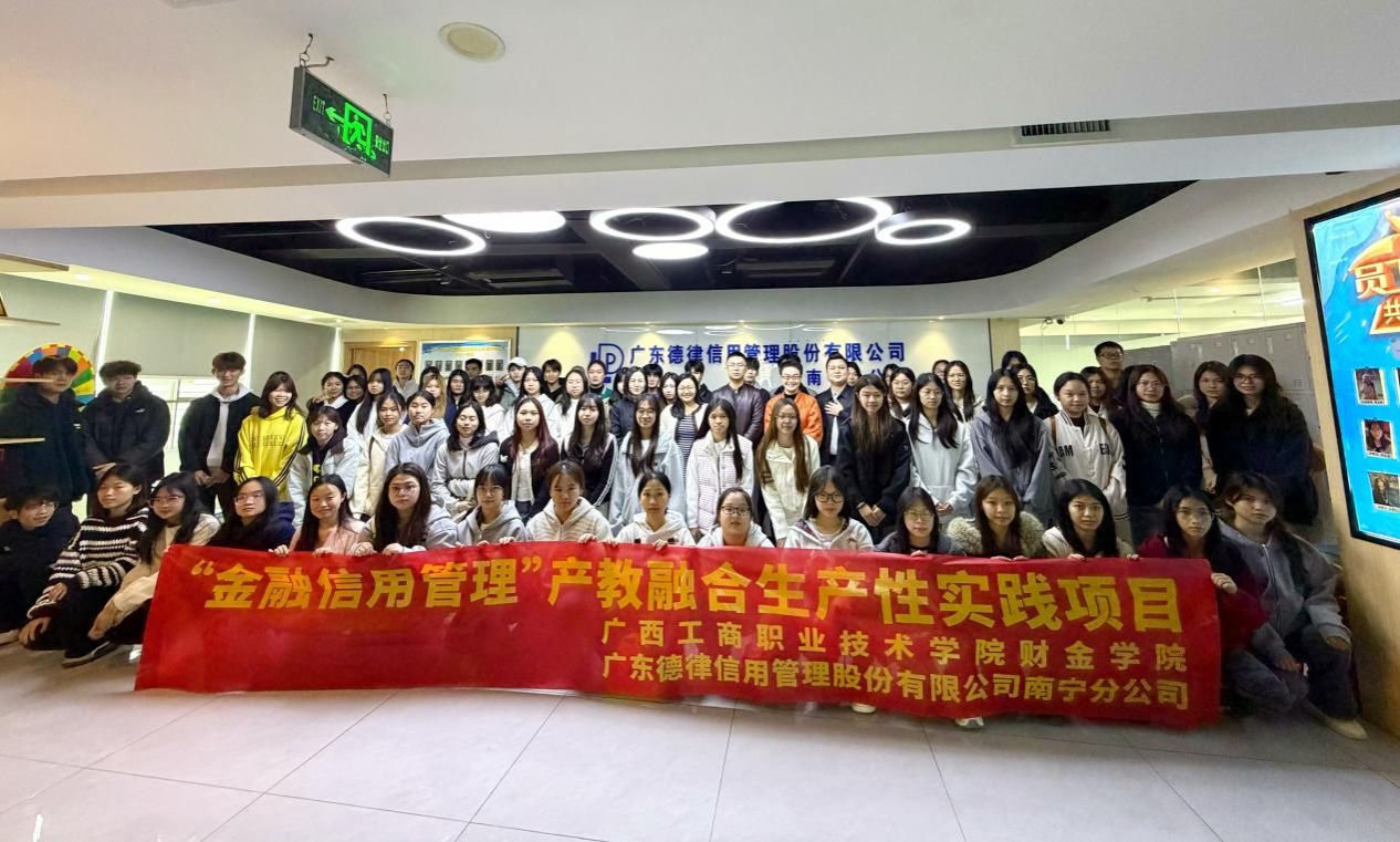 为深入贯彻国家职业教育改革精神,推动课程内容与行业标准精准对接,11 月 18 日,广西工商职业技术学院财金学院组织 2024 级金融服务与管理、财富管理专业共 152 名学生,赴广东德律信用管理股份有限公司南宁分公司开展 “金融信用管理” 产教融合生产性实践活动。
