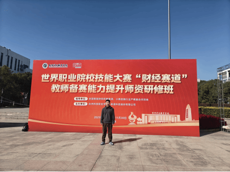 为响应国家职业教育高质量发展号召,深化产教融合、创新人才培养模式,提升学院技能竞赛指导水平与教学改革实效,2025年11月27日至11月30日,财金学院洪超伟老师赴浙江省台州市,参加由全国智能财务职教集团、小微金融行业产教融合共同体指导,台州科技职业学院与新道科技股份有限公司联合主办的世界职业院校技能大赛“财经赛道”教师备赛能力提升师资研修班。