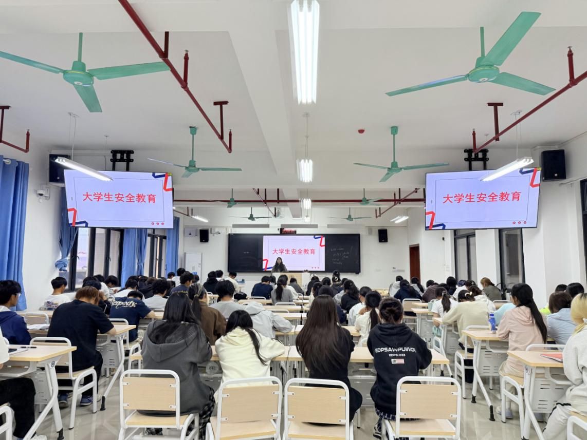 为增强班级同学安全防范意识与自我保护能力,营造平安和谐的校园环境,2025年12月3日,金科2501、2502班全体同学在武鸣校区B2-304教室召开大学生安全教育主题班会,辅导员农云丽老师主持班会。
