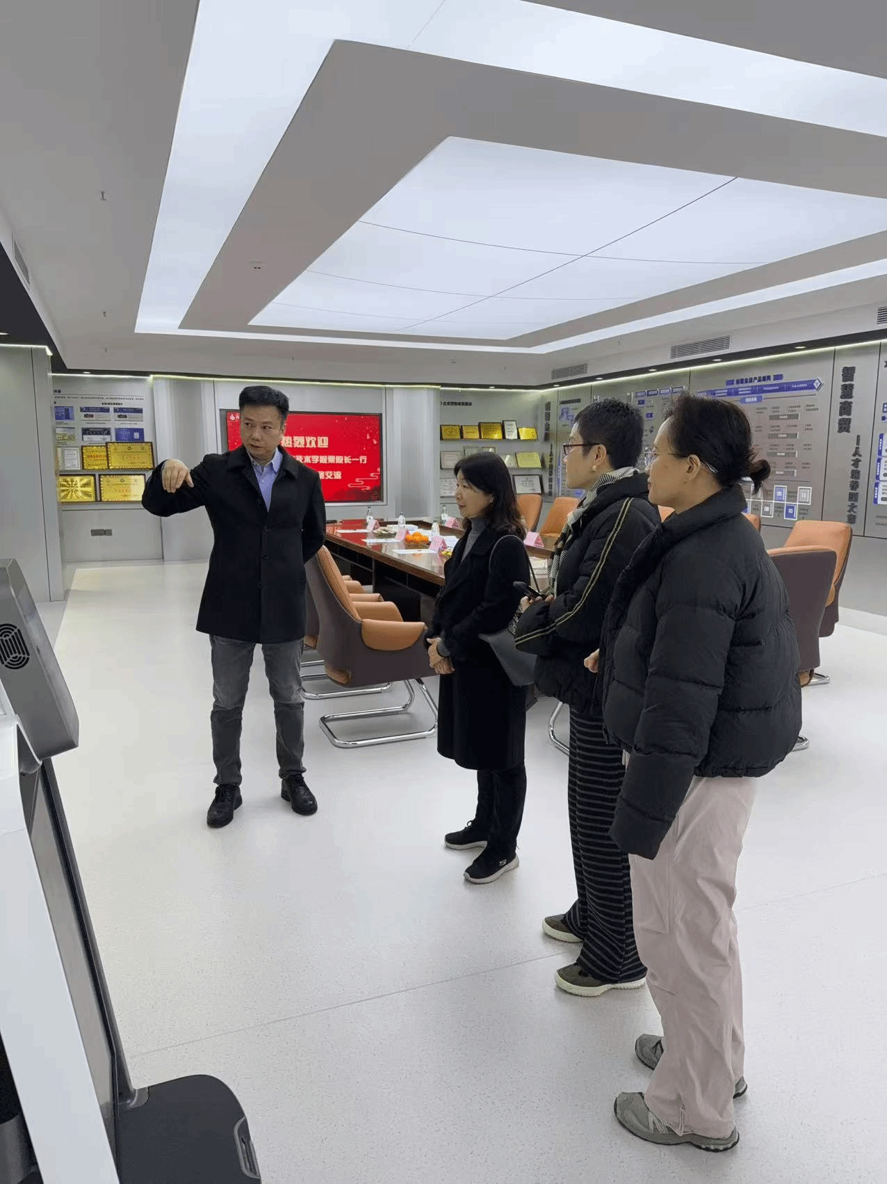 在典阅科技公司,总经理左汲笈热情接待并陪同调研团队参观了企业展览大厅。团队实地考察了人工智能设备的应用场景,通过现场体验投顾机器人的创建与互动,深入了解了智能数字人技术在金融领域的创新成果,并就当前行业对复合型金融科技人才的能力需求进行了现场交流。