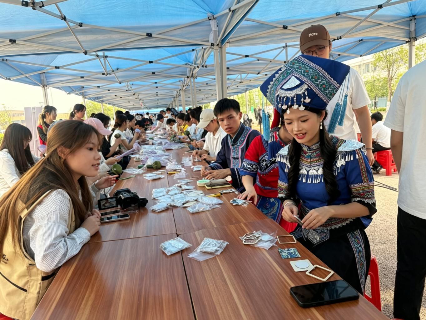 壮乡春韵悠长,民族团结情浓。2026年4月14日,财金学院依托“金树·成长护航”学生活动品牌,在武鸣校区开展2026年“广西三月三”铸牢中华民族共同体意识宣传主题活动,以指尖非遗传匠心,以青春同心聚合力,让民族文化的魅力浸润校园每一个角落,让团结奋进的理念深深根植于同学们的心中。